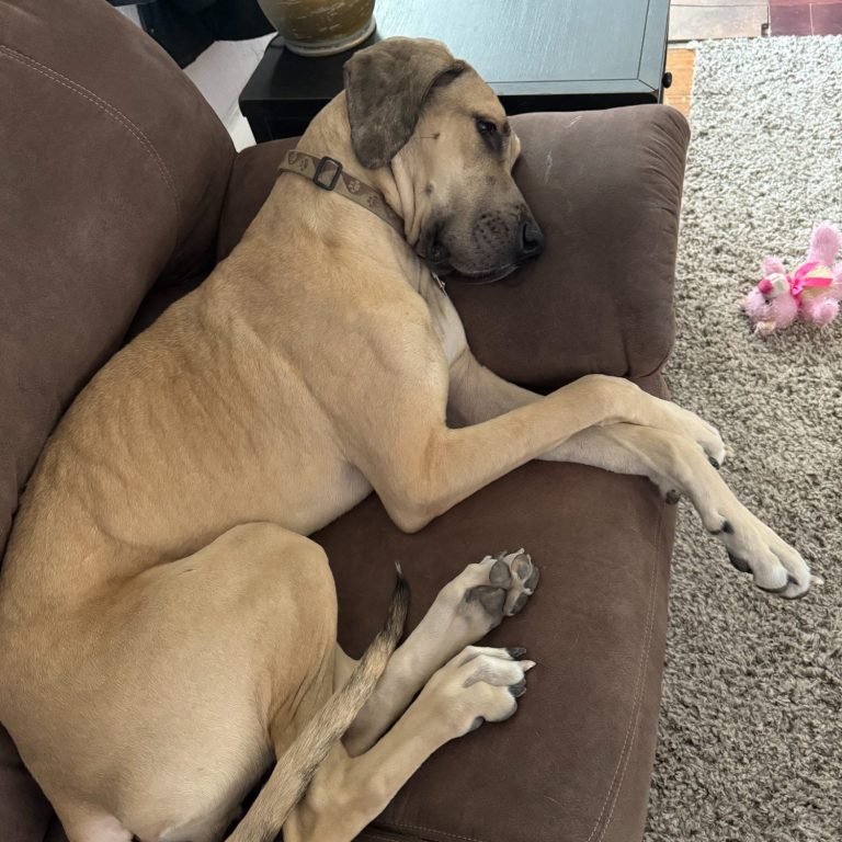 Lady, my Great Dane, who has seen the worst side of humans and will probably always struggle to trust strangers, has finally gained the weight she should have had all along. It's been a long road from skin and bones and timid flinches to trust and puppy joy, but she shows us daily what strength looks like.